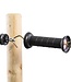 Con questa maniglia per cancello, si creano dei Passaggi nella recinzione elettrica o nel nastro spaventoso. La maniglia isolata permette di aprire il passaggio in modo sicuro. Questa maniglia è dotata di un gancio curvo. A causa della limitazione interna del tiro, la maniglia presenta uno spazio libero di 5 cm. Questo permette di stringere bene il filo o il nastro.